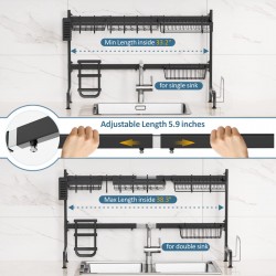 ➤Adjustable Width to Fit Most Sinks - This over the sink drying rack's width can be adjusted from 33.66" to 39.57", making it ideal for larger sink dimensions, which solves the issue of sink mismatch. Note: Please make sure the width of your sink is less than 32.2"