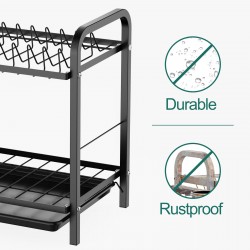 【Rust-Resistant and Sturdy】This dish drying rack for kitchen counter features a high-adhesion rust-resistant coating that effectively prevents rust. we have reinforced the most crucial support section of the rack - the brackets, to make the entire two tier dish drying rack sturdier than structure of thin-wire. You don't need to worry about it tipping over easily after placed dishes and plates