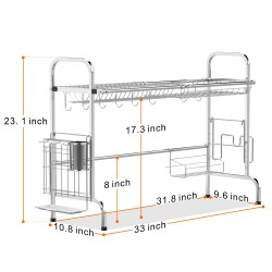 Rustproof Dish Rack - Adopted thick 201 stainless steel and processed polishing and welding, this over sink drying rack is durable and will not rust